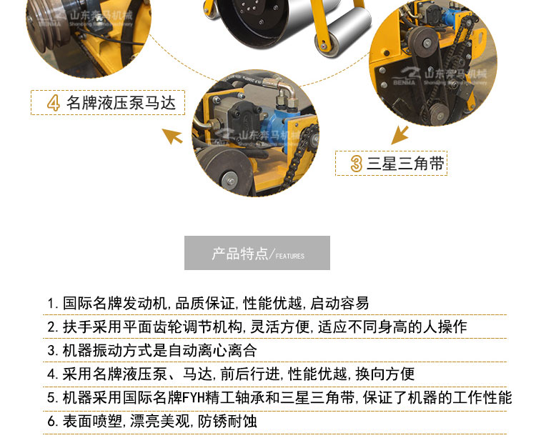 5.整機(jī)采用進(jìn)口軸承和傳輸帶,保證了壓路機(jī)的工作性能;