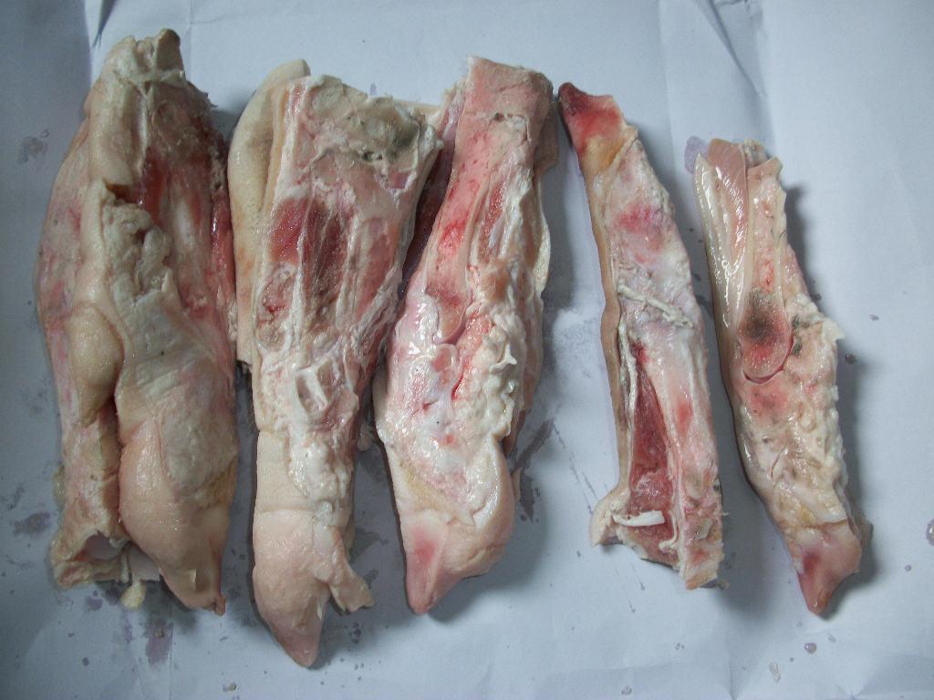2,加工豬蹄時為美觀期間將豬蹄角下端分叉口照準鋸片丟入料筒