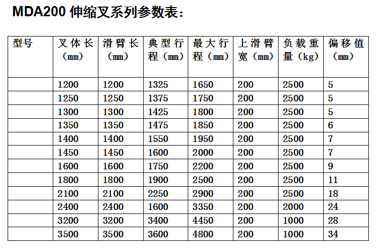 mda200型伸縮叉系列是mda180系列的增強型版本,此系列保留了mda180的特征和優(yōu)點,因尺寸的加大而得到的相關(guān)性能提升,可以處理比小尺寸型號更重的載荷。