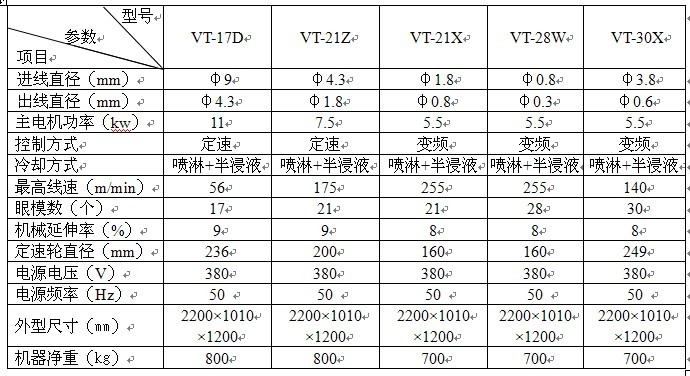 本拉絲機(jī)機(jī)體用鋼板型鋼組合焊接,塔輪軸傳動(dòng)采用雙聯(lián)鏈傳動(dòng),塔輪表面采用特殊處理來(lái)提高表面硬度及粗糙度,模座采用鑲?cè)胧皆O(shè)計(jì),保證拉伸的中心距,減少斷線機(jī)率,拉絲箱上部裝有鉸接啟動(dòng)閉式防護(hù)箱蓋,以防止冷卻液外濺。冷卻循環(huán)水箱有電加熱功能,以保證拉絲工藝的要求,進(jìn)線處設(shè)有斷線停機(jī)裝置。