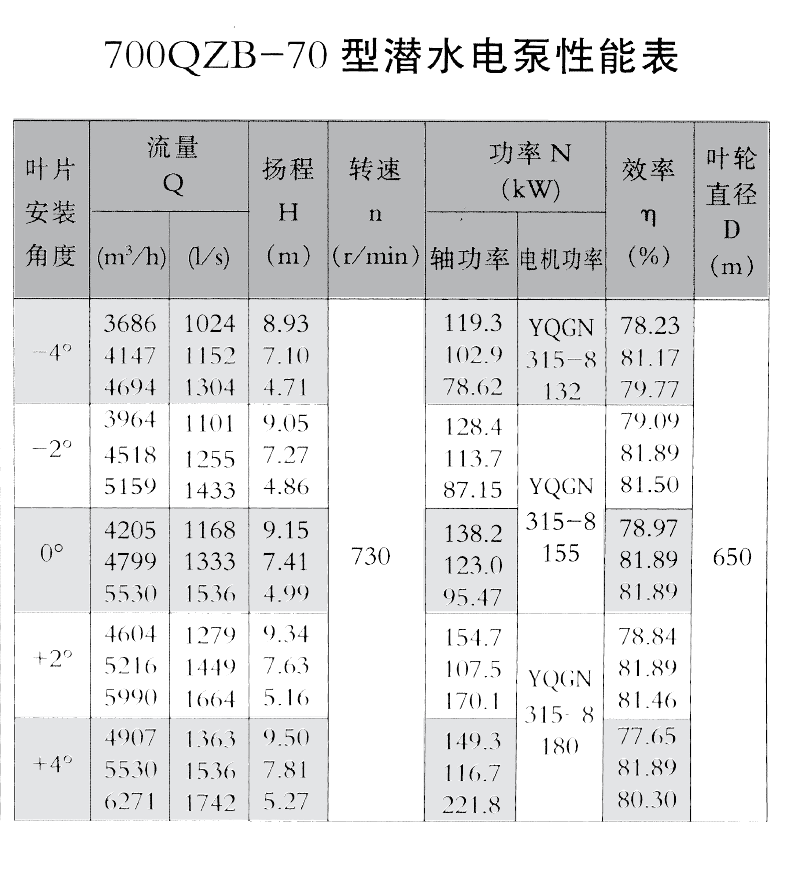 軸流泵靠旋轉(zhuǎn)葉輪的葉片對(duì)液體產(chǎn)生的作用力使液體沿軸線方向輸送的泵,有立式、臥式、斜式及貫流式數(shù)種。揚(yáng)程在1-20m之間,功率在15-1500kw之間,流量在700-100000 m3/h之間。電機(jī)是干式全封閉潛水三相異步電動(dòng)機(jī),可以長(zhǎng)期浸入水中運(yùn)行。電機(jī)水泵一體,安 裝方便,便捷。電機(jī)采用雙重或三重機(jī)械密封及輔助密封結(jié)構(gòu),f級(jí)耐溫155℃絕緣,防護(hù)等級(jí)ip68。電機(jī)內(nèi)設(shè)有密封泄露,繞組和軸承升溫檢測(cè)裝置。電機(jī)功率在315kw以下時(shí)選用380v或600v。功率在315kw以上時(shí)選用6kv或10kv。主要口徑在dn350-dn1200之間。材質(zhì)有鑄鐵,304,316. 我公司生產(chǎn)的潛水軸流泵遠(yuǎn)銷國(guó)內(nèi)外,本著高質(zhì)量,高性能,高效率的原則,使公司業(yè)績(jī)逐年增長(zhǎng),受到新老客戶一致好評(píng)。我公司生產(chǎn)的軸流泵無(wú)論從材質(zhì)還是工藝上在國(guó)內(nèi)都名列前茅,做工精細(xì),密封性能好,效率高,故障少,真正做到物美質(zhì)高價(jià)廉。多道檢測(cè),多道保護(hù):油水探頭,浮子開(kāi)關(guān),均能實(shí)時(shí)檢測(cè),并能實(shí)現(xiàn)報(bào)警、停機(jī)、保留故障信號(hào)等功能,使?jié)撍姍C(jī)安 全可靠。