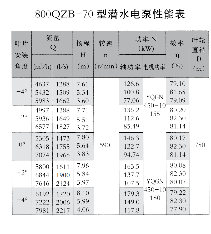 五、潛水軸流泵混流泵技術(shù)參數(shù):