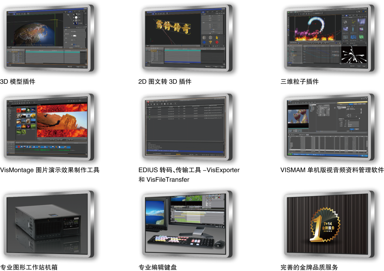 傳奇雷鳴非編輯系統(tǒng)除具有edius所有特性外,還增加了以下獨(dú)有特性:3d模型插件、2d圖文轉(zhuǎn)3d插件、三維粒子插件效果制作工具、vismam單機(jī)版視音頻資料管理軟件、完善的品質(zhì)服務(wù)等。