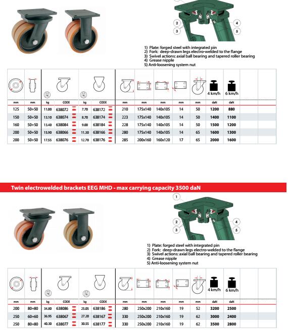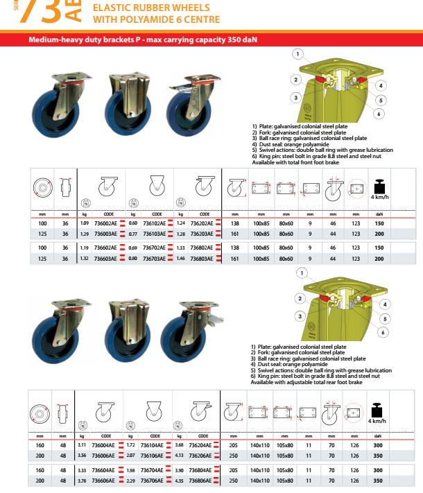 tellurerota托盤叉車腳輪:74系列,75系列,76系列,77系列,78系列,79系列;