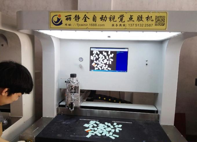 麗靜自主研發(fā)ccd視覺旋轉(zhuǎn)定位貼片(貼物)機,先點膠后取料,吸嘴取料每次通過視覺定位計算偏移角度,然后放到同點膠精準的位置。
