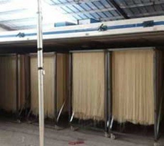 掛面烘干一般都采用對(duì)流熱力烘干法,即利用熱源,加熱烘干室的空氣,借助風(fēng)力使熱空氣對(duì)流,用以加熱濕面條,同時(shí)帶走濕面條中的水分,熱空氣就成為干燥介質(zhì),既是載熱體也是載濕體,也就是說(shuō),掛面烘干需要熱量,靠熱量進(jìn)行濕熱交換,濕面條只有在吸收熱量之后,才能使自身水分汽化并排放出去,達(dá)到干燥的目的。因此,給熱是第一位的,是決定性的。在烘干過(guò)程中,更為重要的是保證掛面質(zhì)量,即條型平直、色澤光潔,具有良好的烹調(diào)性能和機(jī)械強(qiáng)度,不酥、不脆、不酸 、不潮。同時(shí),還要求經(jīng)濟(jì)合理,具有較高的生產(chǎn)率。