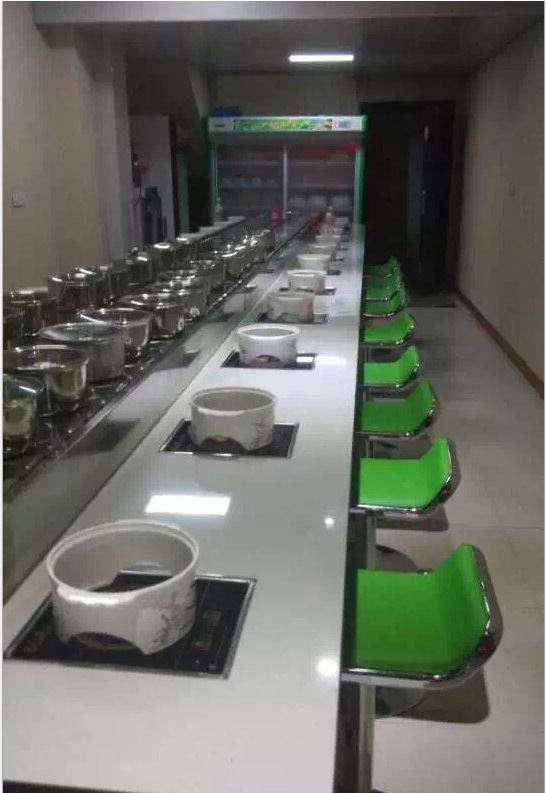 不等,價格不一,很容易讓人挑花眼,無從選擇,往往客戶花了大價錢還買到了次品,成都壹欣一直著重于品質(zhì),在質(zhì)量上我們精益求精,在價格上我們薄利多銷,公司現(xiàn)階段正在開發(fā)全國市場,鑄造精英品牌,往往都是零利銷售,身心可以得到片刻的休閑,靜享舌尖上的美味"這便是大城小鍋所堅持的理念也是所有回轉(zhuǎn)火鍋店老板的心之所愿,與傳統(tǒng)火鍋的熱鬧火辣不同,回轉(zhuǎn)火鍋更加注重的是食品衛(wèi)生、環(huán)境舒適。大城小鍋天目山路店及萊蒙都會店采用的都是愛鑫聚 304回轉(zhuǎn)火鍋設(shè)備 304回轉(zhuǎn)火鍋設(shè)備主要用于回轉(zhuǎn)火鍋店,日本料理、韓國料理、西餐廳及自助餐廳等等,速度為0-5米/分鐘可調(diào)節(jié),鏈板為特制月牙形不銹鋼鏈板,其設(shè)備安 裝后,業(yè)主可根據(jù)自身情況可進行裝修,客人用餐臺面可用大理石或?qū)嵞狙b修,設(shè)備還可根據(jù)業(yè)主餐廳布置的要求,來做不同形狀,其價格合理,外觀精美,無噪音等特點。