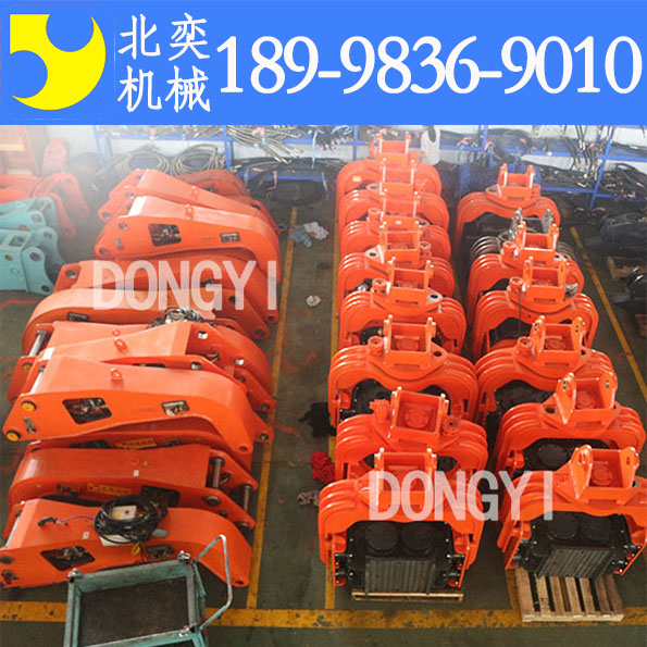 2、在選用翻轉(zhuǎn)夾樁錘情況下,可設(shè)計雙用夾頭,用小夾頭或者夾板輔助,無需加長或改裝大小臂,如果樁型是直徑30mm以下管樁、水泥樁、槽鋼、工字鋼、拉升鋼板樁,長度在12米以上,挖掘機(jī)改裝成打樁機(jī)建議使用30噸級別機(jī)或者以上。