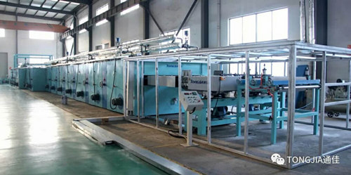 山東通佳4m高速土工格柵生產(chǎn)線是結(jié)合國(guó)內(nèi)知名土工格柵企業(yè)多年生產(chǎn)精髓和國(guó)際領(lǐng)先的塑料擠出疊層專利技術(shù)完美于一體,經(jīng)國(guó)外知名擠出機(jī)專家精心優(yōu)化和通佳多年生產(chǎn)塑料網(wǎng)材設(shè)備的經(jīng)驗(yàn)積累,研發(fā)制造的國(guó)內(nèi)首臺(tái)套高速全自動(dòng)土工格柵生產(chǎn)線!生產(chǎn)制品線速度達(dá)到16米/分鐘,比傳統(tǒng)機(jī)型生產(chǎn)速度提升了二倍有余,再次顛覆了行業(yè)內(nèi)對(duì)格柵生產(chǎn)速度的傳統(tǒng)概念!