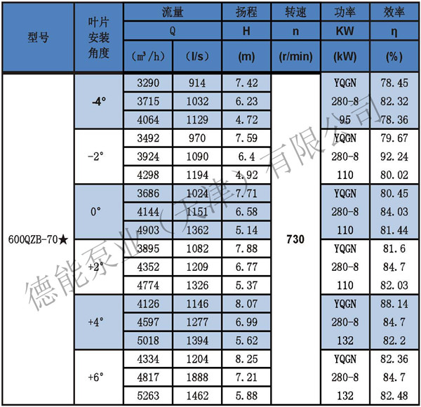 春灌抗旱專用潛水軸流泵部分型號參數(shù)