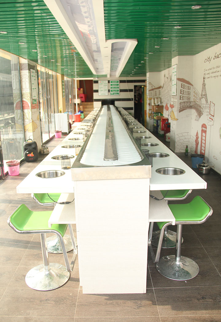 5.旋轉(zhuǎn)火鍋設(shè)備的組裝 在旋轉(zhuǎn)火鍋輸送設(shè)備被運(yùn)送到客戶的店鋪之后,公