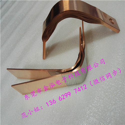 銅箔軟連接又叫銅帶軟連接、銅片式軟連接,是選用優(yōu)質(zhì)的0.05~0.3mm厚銅箔為原材料,將銅箔疊片有些壓在一起,通過(guò)高分子渙散焊機(jī)的大電流高溫加熱使其分裂熔解壓焊成型。