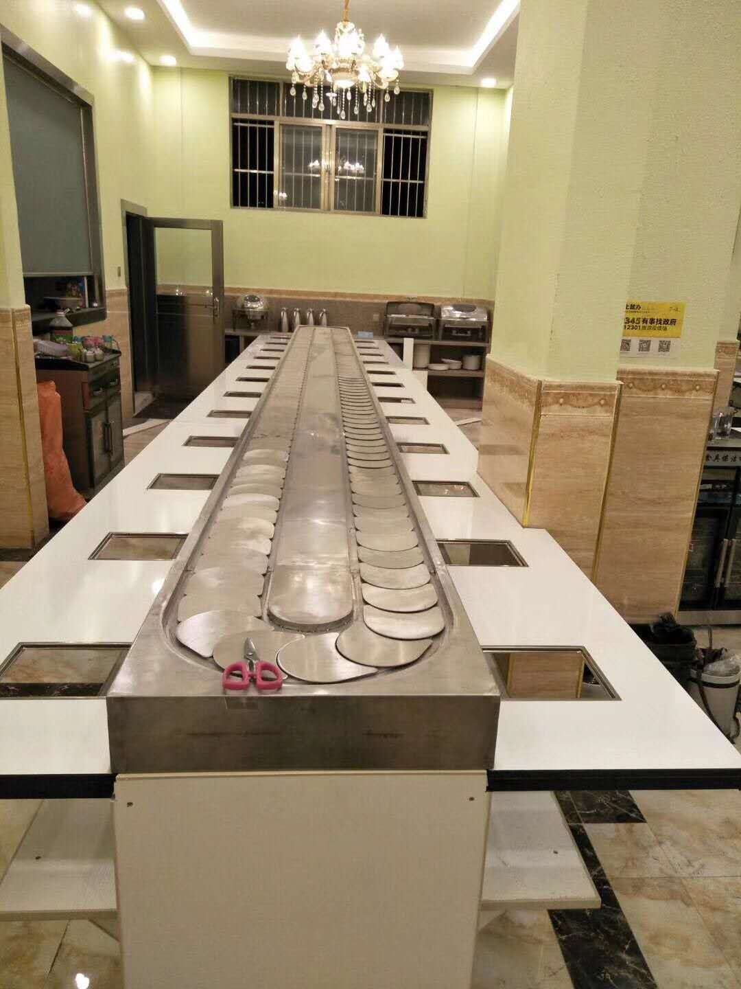 根河旋轉(zhuǎn)小火鍋 旋轉(zhuǎn)涮涮鍋 自助小火鍋優(yōu)勢獨(dú)特回轉(zhuǎn)火鍋旋轉(zhuǎn)火鍋傳送帶主要的特點(diǎn)有:1.無廚房:獨(dú)立的洗配間,不用設(shè)多大的廚房,整個(gè)配置加工過程過程,都由顧客在餐桌上完成的。2.無大灶:不需要設(shè)大型的灶臺和灶具,減少前期投資,回轉(zhuǎn)火鍋設(shè)備圖,即節(jié)省空間又降低成本。3.無明火:采用現(xiàn)代高科技技術(shù)環(huán)保制電磁爐,沒有明火,不存在安 全隱患。4.無廚師:規(guī)范化程式化的操作流程,無需大廚師,普通服務(wù)員無需培訓(xùn)就能操作5.無油煙:采用環(huán)保電磁爐,不粘鍋,無明火,沒有絲毫油煙產(chǎn)生,環(huán)保,衛(wèi)生。6.無經(jīng)驗(yàn):操作人員無需烹飪經(jīng)驗(yàn),配菜,配料都能操作。7.無噪音:獨(dú)特的回轉(zhuǎn)設(shè)備工藝,無需排煙,降噪等。 一:自助火鍋傳送帶1、201純不銹鋼材質(zhì)2、進(jìn)口電機(jī),國際標(biāo)準(zhǔn)銅線高科技研制,不斷電,不燒機(jī),使用壽命長3、進(jìn)口變頻器,隨意調(diào)節(jié)傳送帶傳懂速度4、高科技人員專業(yè)控制生產(chǎn)線,保證質(zhì)量,保障產(chǎn)量5、永不生銹6、永不變形7、堅(jiān)固耐用8、不導(dǎo)磁,防靜電,安 全。二:火鍋設(shè)備臺面1、采用抗倍特,回轉(zhuǎn)火鍋設(shè)備,人造石,大理石,不銹鋼,實(shí)木等優(yōu)質(zhì)材料2、所有臺面銜接自然美觀,堅(jiān)固耐用3、抗酸 堿 腐蝕4、耐高溫5、天然無毒無污染6、防潮,防霉,抗沖擊,7、防靜電,煙灼,等優(yōu)良特性。三:櫥柜1、厚度20mm,堅(jiān)固抗撞擊2、高分子防火板材,防潮,耐臟,易于清理3、專業(yè)機(jī)器成產(chǎn)線,保質(zhì)保量4、工藝精湛,細(xì)節(jié)出眾四:吧椅1、標(biāo)準(zhǔn)三級氣桿升降氣桿2、防爆,防震3、仿真皮座椅,舒適,時(shí)尚,簡約五:電磁爐1、采用800w專業(yè)火鍋電磁爐,省電省時(shí)2、進(jìn)口銅芯高科技制造工藝,絕不燒電3、抗摔,抗靜電,使用壽命長六:小涮鍋1、304不銹鋼材質(zhì),防靜電,耐用2、造型簡約,易于清理七:電線等電力配套1、國標(biāo),純銅線,防斷裂,防漏電2、導(dǎo)電塊,節(jié)約電源3、標(biāo)配公牛插排,配電箱等,保障讓您放心,安 心使用我們的產(chǎn)品全國直銷,質(zhì)量可靠!信譽(yù)為先,服務(wù)周到!本司旋轉(zhuǎn)火鍋設(shè)備由以下部分:1臺架裝置、動(dòng)力裝置、輸送帶。2金熙旺旋轉(zhuǎn)火鍋設(shè)備主要采用優(yōu)質(zhì)201不銹鋼材質(zhì)和工程塑料等美觀、耐用、光滑的材料制造而成。3金熙旺旋轉(zhuǎn)火鍋設(shè)備可根據(jù)餐店使用面積及客戶要求進(jìn)行設(shè)計(jì)。主要特點(diǎn)有:輸送鏈帶運(yùn)行平靜 2、輸送鏈帶兩鏈片間高度差小 3、輸送導(dǎo)軌接駁位平整、無毛刺 4、設(shè)計(jì)合理,鏈帶經(jīng)久耐用 5、鏈片墊條采用特殊材質(zhì)制造,具有耐磨、低噪音等特點(diǎn) 6經(jīng)由經(jīng)驗(yàn)豐富的生產(chǎn)團(tuán)隊(duì)制作,回轉(zhuǎn)火鍋 設(shè)備,交貨準(zhǔn)時(shí),工藝精美。公司本著一切皆為客戶考慮的原則,我們?yōu)閲鴥?nèi)外客戶提供優(yōu)質(zhì)的一條龍服務(wù):投資預(yù)算―選址―室內(nèi)設(shè)計(jì)效果圖及裝修―餐飲銷售策劃―餐具廚具―餐凳吧椅等。完善的一條龍服務(wù)及專業(yè)的餐飲市場知識,讓您的投資計(jì)劃能更合理、更專業(yè)地開展,讓您的投資無后部之憂!公司產(chǎn)品系列完整,質(zhì)量可靠,秉承以誠信為本,以精湛的技術(shù)、優(yōu)質(zhì)的服務(wù)為客戶解決問題!我們專業(yè)的技術(shù)是您賺錢的保障。 做生意,好產(chǎn)品當(dāng)然想賣高價(jià)錢,但我們卻堅(jiān)信:質(zhì)優(yōu)保生存,微利達(dá)致遠(yuǎn),只有物超所值,才能永續(xù)經(jīng)營。