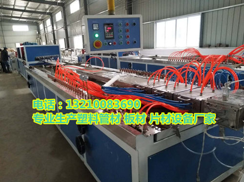 青島金瑞特塑料機械制造竹木纖維集成墻面生產線 pvc木塑快裝墻板設備 生態(tài)護墻板生產機器:該生產線主要由錐型雙螺桿,模具、真空型臺、牽引機、切割機、翻料架組成。生產線采用自動化控制,自動化程度高,設備穩(wěn)定,操作簡 便,生產效率高。通過更換不同規(guī)格的模具可以生產多種規(guī)格、尺寸、形狀、厚度的木塑裝飾墻板,木塑墻板,快裝墻板,生態(tài)墻板。