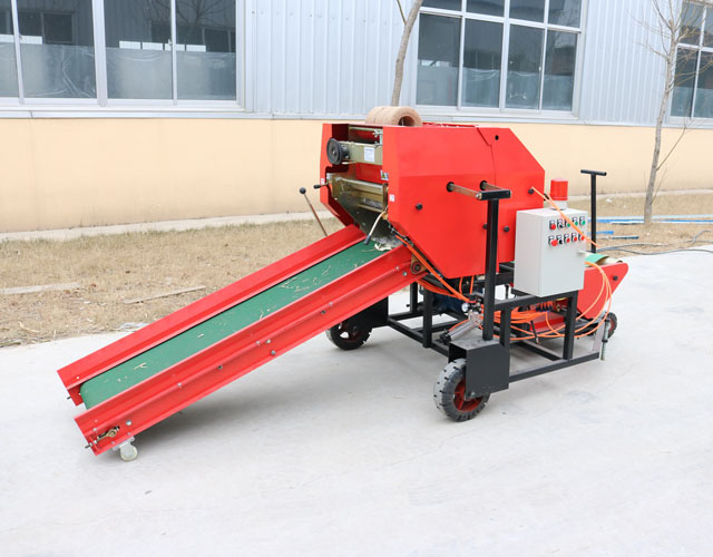全自動青貯打捆包膜機結構:主要由鋁輥機構及牽引部分、進料機構、主傳動機構、繞線捆扎機構、安 全防護罩機構等部分組成。能將揉搓機揉搓后的玉米秸桿可靠打捆,具有打捆速度快,物料不堵塞,密實度大等優(yōu)點,避免了其它打捆機捆扎后草捆密度小,包膜后容易霉爛的現(xiàn)象,捆扎后的玉米秸桿密度大,便于包膜青貯;同時對其它干、鮮草類同樣能進行捆扎,是畜牧養(yǎng)殖業(yè)常用設備。