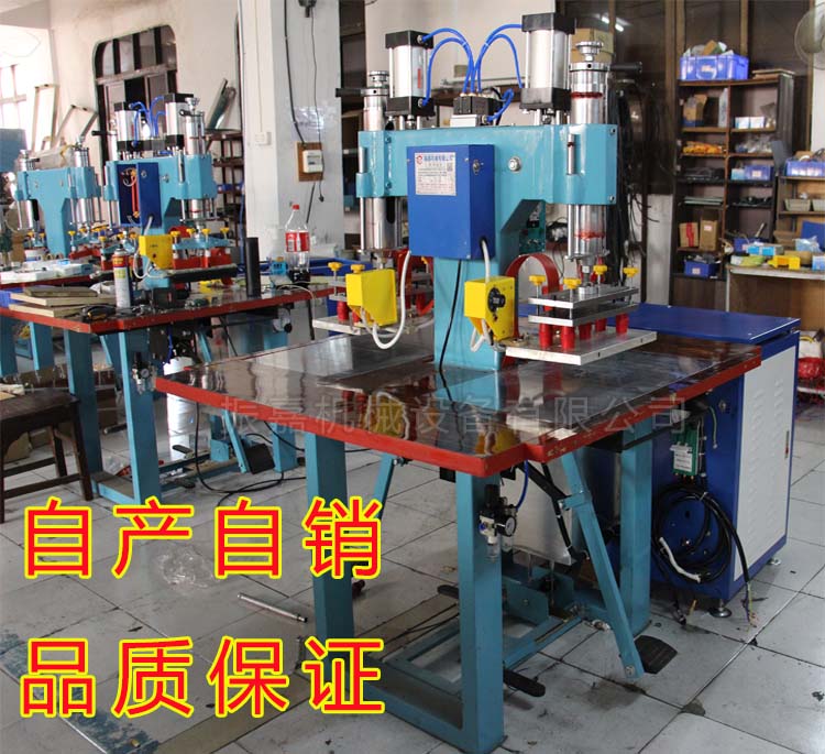 pvc涂布熱合機(jī)基本結(jié)構(gòu):* pvc涂布熱合機(jī)采用雙頭腳踏式操作,操作工作臺(tái)面板分別為機(jī)頭的兩邊,操作方式主要是由操作人員右腳踏定位和左腳開(kāi)關(guān),焊接過(guò)程由時(shí)間自動(dòng)控制,左右機(jī)頭交替使用。* pvc涂布熱合機(jī)采用桿稈操作原理,強(qiáng)力式機(jī)頭,機(jī)頭的壓力可隨意調(diào)節(jié),根據(jù)不同焊接產(chǎn)品的實(shí)際要求調(diào)節(jié)相應(yīng)的壓力。pvc涂布熱合機(jī)機(jī)頭設(shè)計(jì)兩根直線導(dǎo)軌定位,機(jī)頭在任何情況下不會(huì)擺動(dòng),針對(duì)定位花色的原材料加工精確選擇。pvc涂布熱合機(jī)主要使用在醫(yī) 療用品行業(yè)/塑膠、塑料包裝行業(yè)/服裝壓花加工行業(yè)/汽車內(nèi)飾件行業(yè)/充氣玩具行業(yè)/家居用品行業(yè)以及各種塑膠產(chǎn)品的加工熱合焊接封口如:服裝壓花、鞋面壓花、鞋墊壓花、皮革壓花、皮革商標(biāo)、箱包壓花、包裝袋、眼鏡盒、引流袋封口、尿袋封口、血袋封口、地毯壓邊、熱水袋焊接、pvc銀幕焊接、充氣玩具、雨衣熱合、下水褲焊接、人造革壓痕、皮革壓標(biāo)、文具用品、籃球壓花、足球壓花、帽子壓花、手套壓花、電暖寶熱合、軟膜天花焊接、pvc壓延膜封口、pvc塑料封口、pvc塑料焊接、pvc反光標(biāo)、沼氣池焊接、高頻滴塑壓花、塑膠塑料熱合焊接等。