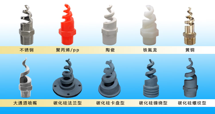 說明:螺旋噴嘴又叫螺旋噴頭、脫硫噴嘴、防堵塞噴嘴、大流量噴嘴、除塵噴嘴、耐腐蝕噴嘴,是一種實(shí)心錐形或空心錐形噴霧噴嘴