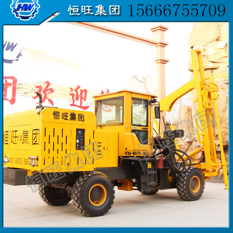 自帶螺桿式空壓機(jī)于一體,此款裝載式打拔鉆一體機(jī),裝載機(jī)動(dòng)力60kw,無級(jí)變速,氣剎,標(biāo)配10立方8公斤紅五環(huán)螺桿空壓機(jī),空壓機(jī)獨(dú)立玉柴84kw發(fā)動(dòng)機(jī),低能耗穩(wěn)定性高,可加裝除塵裝置,鉆孔工作無揚(yáng)塵更是加裝了防塵裝置,避免了使用空壓機(jī)鉆孔時(shí)造成的粉 塵污染,高效高質(zhì),省錢省時(shí)省力。