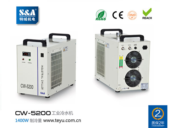精雕機(jī)cnc雕刻機(jī)需要冷卻,因?yàn)樵诩庸ぶ行闹鬏S運(yùn)行的過程中,主軸會(huì)產(chǎn)生一定的熱量,如果不及時(shí)冷卻主軸,會(huì)影響主軸頭的加工精度以及使用壽命。雕刻機(jī)主軸有兩種冷卻方式:油冷和水冷。油冷的局限是一但發(fā)生漏油會(huì)造成污染,難以清理,而水冷則沒有這個(gè)困擾,非常環(huán)保。也有用戶擔(dān)心使用冷水機(jī)對(duì)雕刻機(jī)冷卻,會(huì)因水中有雜質(zhì)造成循環(huán)水路堵塞,選擇特域(s&a)冷水機(jī)并配置特域自主研發(fā)的除垢劑 ,輕松解決這類問題。雕刻機(jī)主軸多數(shù)發(fā)熱量不是很大,推薦配置特域cw-5200冷水機(jī)進(jìn)行冷卻。