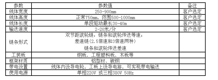 3、倍速鏈輸送線可在高溫、粉 塵等惡劣的環(huán)境下作業(yè),性能可靠;