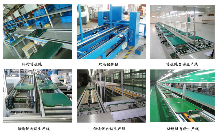 發(fā)動(dòng)機(jī)、電腦、電視、微波爐、打印機(jī)、傳真機(jī)等裝配線;音響功放、電腦顯示器、電腦主機(jī)、筆記本、空調(diào)等電器、機(jī)電行業(yè)生產(chǎn)線非常適合運(yùn)用倍速鏈輸送線來(lái)輸送裝配;