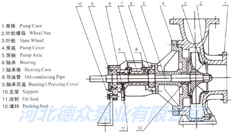 1、該油泵是消化吸收國外油泵的基礎(chǔ)上研制的第二代產(chǎn)品,基本結(jié)構(gòu)形式為單級單吸懸臂式腳支撐結(jié)構(gòu),熱油泵的進口為軸向吸入,出口為中心垂直向上,和電機同裝于底座上。