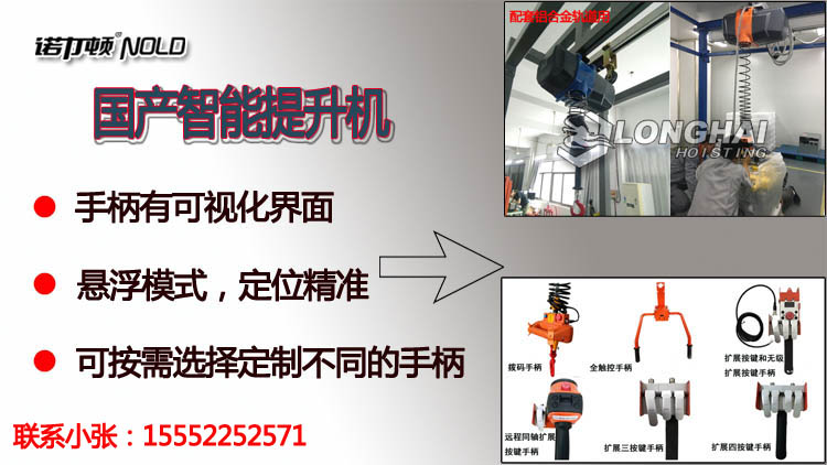 600kg智能提升裝置/智能電動提升機 機器人行業(yè)用提升機【買起重工具 就到龍海起重】智能提升裝置(國產(chǎn)智能提升機)實現(xiàn)高頻率起吊,精準放置以及高效安 全的提升作業(yè),具有懸浮模式、稱重功能和多重安 全保護裝置等特點,可定制手柄,是一款新型的智能電動葫蘆。