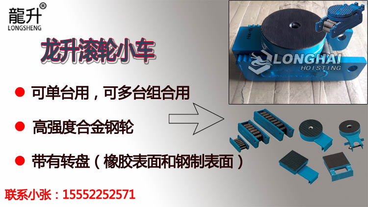 lhrf-t15重型滾輪小車15噸 重型滾輪廠家直銷現(xiàn)貨【買起重工具 就到龍海起重】履帶式滾輪小車屬于我公司國產(chǎn)龍升牌的載重滾輪小車,可單臺使用也可多臺組合用,帶有轉(zhuǎn)盤設(shè)計,適用于電力建設(shè)、注塑機(jī)、壓力容器、發(fā)電廠鍋爐、冷軋機(jī)搬運、凍干機(jī)搬運等場合。