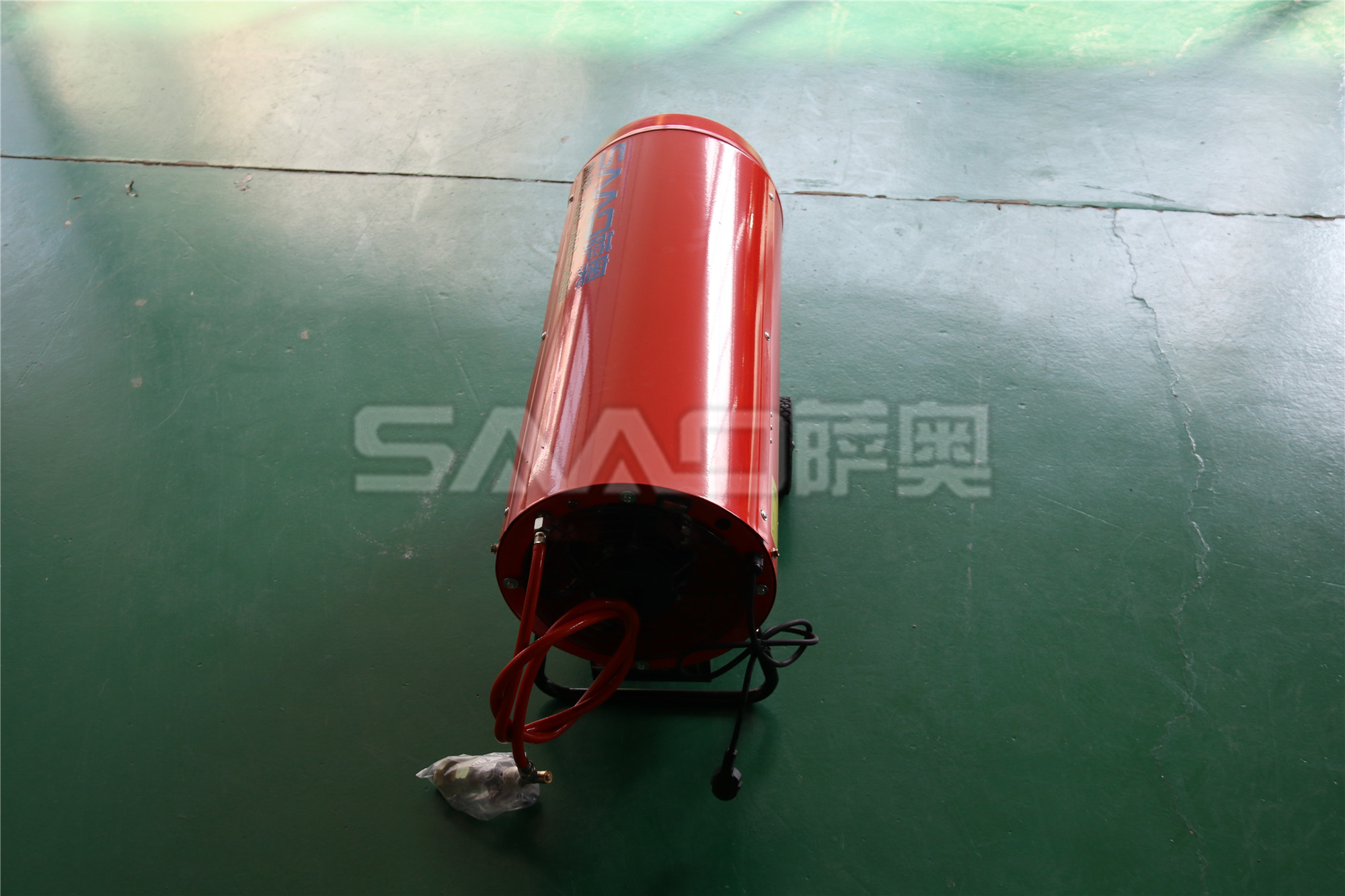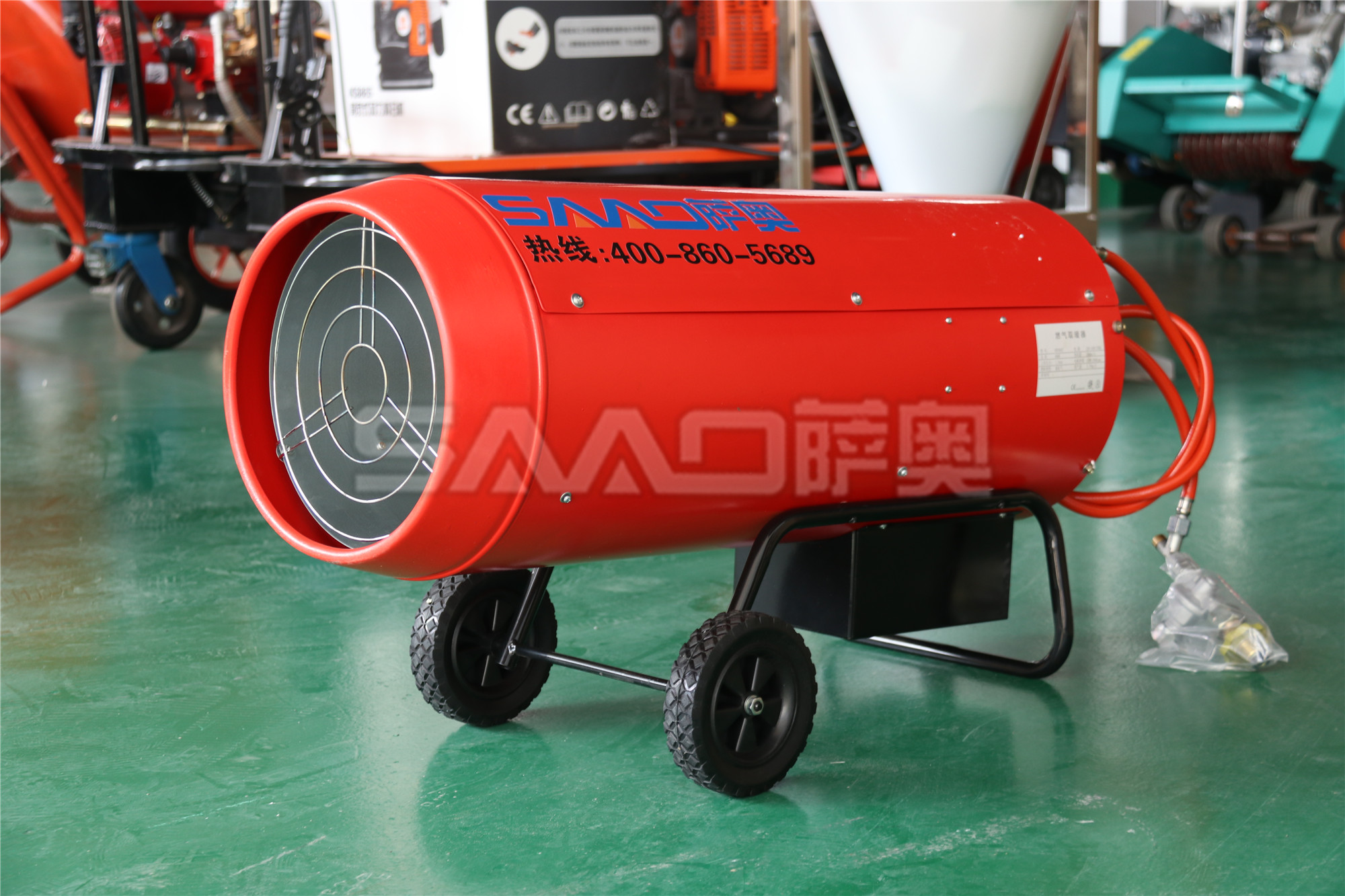 暖風(fēng)機(jī)是一種能量轉(zhuǎn)換設(shè)備,向暖風(fēng)機(jī)中輸入的能量有燃料中的化學(xué)能、電能、高溫?zé)煔獾臒崮艿刃问剑?jīng)過暖風(fēng)機(jī)轉(zhuǎn)換,向外輸出具有一定熱能的暖風(fēng)、熱風(fēng)、高溫空氣。暖風(fēng)機(jī)包括燃燒系統(tǒng)和風(fēng)機(jī)兩大部分,燃燒系統(tǒng)產(chǎn)生巨大的熱量然后由風(fēng)機(jī)往外吹出熱量。暖風(fēng)機(jī)中產(chǎn)生的熱風(fēng)可直接為工業(yè)生產(chǎn)和人民生活提供所需熱能或暖氣,大型暖風(fēng)機(jī)主要用于工業(yè),小型暖風(fēng)機(jī)主要用于生活。薩奧速熱暖風(fēng)機(jī)專業(yè)取暖13年。4大核心技術(shù)改寫冬季體驗德國工藝,十秒速熱,自動恒溫,過熱保護(hù)。公司產(chǎn)品主要應(yīng)用于大型廠房采暖、裝潢施工、建筑工地水泥養(yǎng)生、畜牧養(yǎng)殖場、體育場館、戶外運(yùn)動、影視拍攝、野外作業(yè)、倉庫機(jī)庫、展廳展館,供水、電力、電信行業(yè)冬季搶修施工、機(jī)械設(shè)備防凍解凍等場所的取暖、加熱、保溫、防凍、烘干、干燥及通風(fēng)型號:snf-70a功率:70kw電壓:220-240v︿50hz輸出熱量:238850電機(jī)功率:430w輸出空氣:1300m3/h供暖面積:500㎡燃料消耗:5.8kg/h郵箱容積:69l凈重:40kg毛重:44.5kg產(chǎn)品尺寸:1120×570×706mm包裝尺寸:1110×506×680mm燃油暖風(fēng)機(jī)特點(diǎn):直燃熱風(fēng)機(jī),沒有煙囪;燃料為柴油或者煤油;氣體霧化燃燒器;不銹鋼燃燒室?guī)в凶詣永鋮s裝置;電子火焰監(jiān)控;全自動電子安 全控制裝置。薩奧品質(zhì)值得信賴。一年質(zhì)保,終身售后維修,選擇薩奧,選擇領(lǐng)先!