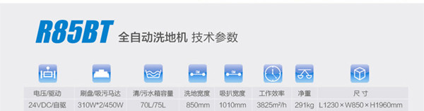 容恩r85bt全自動(dòng)自驅(qū)洗地機(jī)的參數(shù):