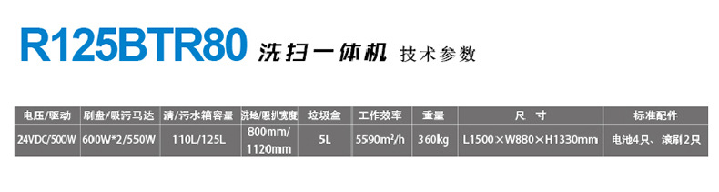 容恩r125btr80駕駛式洗掃機的參數(shù):