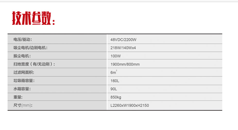 3、邊刷1900mm,主刷寬度800mm,掃地寬度大,工作效率高。