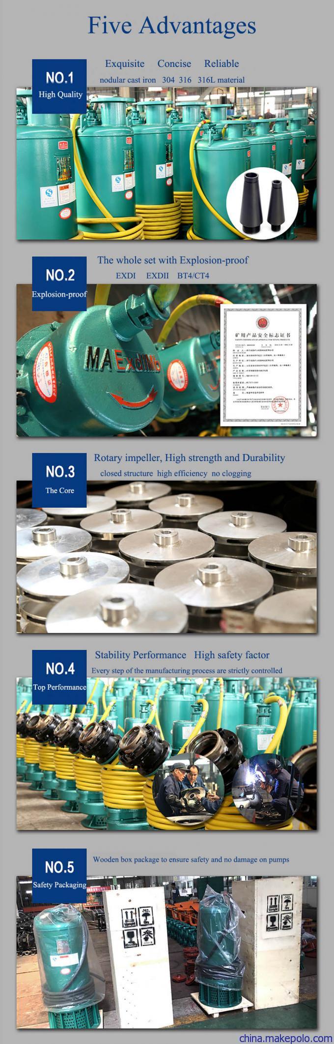 bqs礦用隔爆型排污排沙潛水電泵是我公司與江蘇大學(xué)聯(lián)合研制開發(fā)的,產(chǎn)品規(guī)格齊全,功率4kw,流量范圍15m3/h,揚(yáng)程范圍從30m,產(chǎn)品皆實(shí)現(xiàn)了全揚(yáng)程、無過載。安 立泰集團(tuán)鍥而不舍地對產(chǎn)品進(jìn)行技術(shù)創(chuàng)新,解決了排污排沙潛水電泵在產(chǎn)品結(jié)構(gòu)、參數(shù)優(yōu)化、制造工藝、運(yùn)行效率、密封防漏、材料應(yīng)用等方面的技術(shù)關(guān)鍵問題,擁有二十多項(xiàng)專利技術(shù),應(yīng)用了多項(xiàng)最新研究成果,形成了成熟的電機(jī)、電泵制造工藝流程,與國內(nèi)同類產(chǎn)品相比具有安 全可靠、輕便實(shí)用、排污排沙性能好、使用壽命長、型譜合理、選型方便等優(yōu)點(diǎn)。