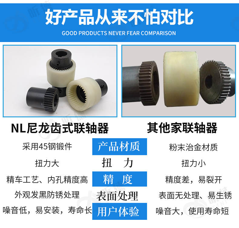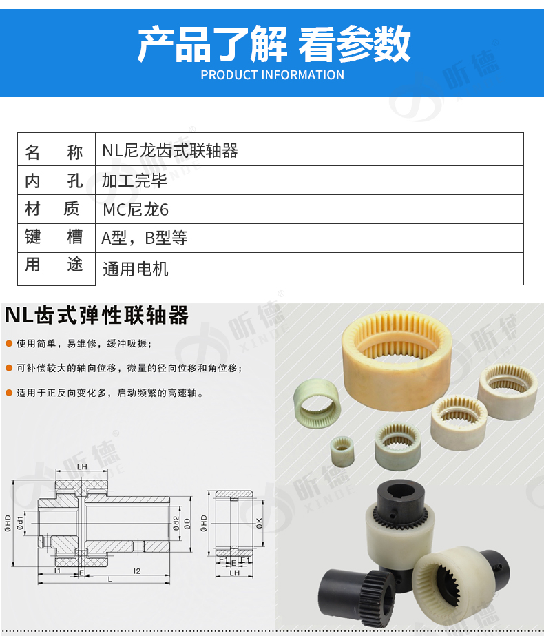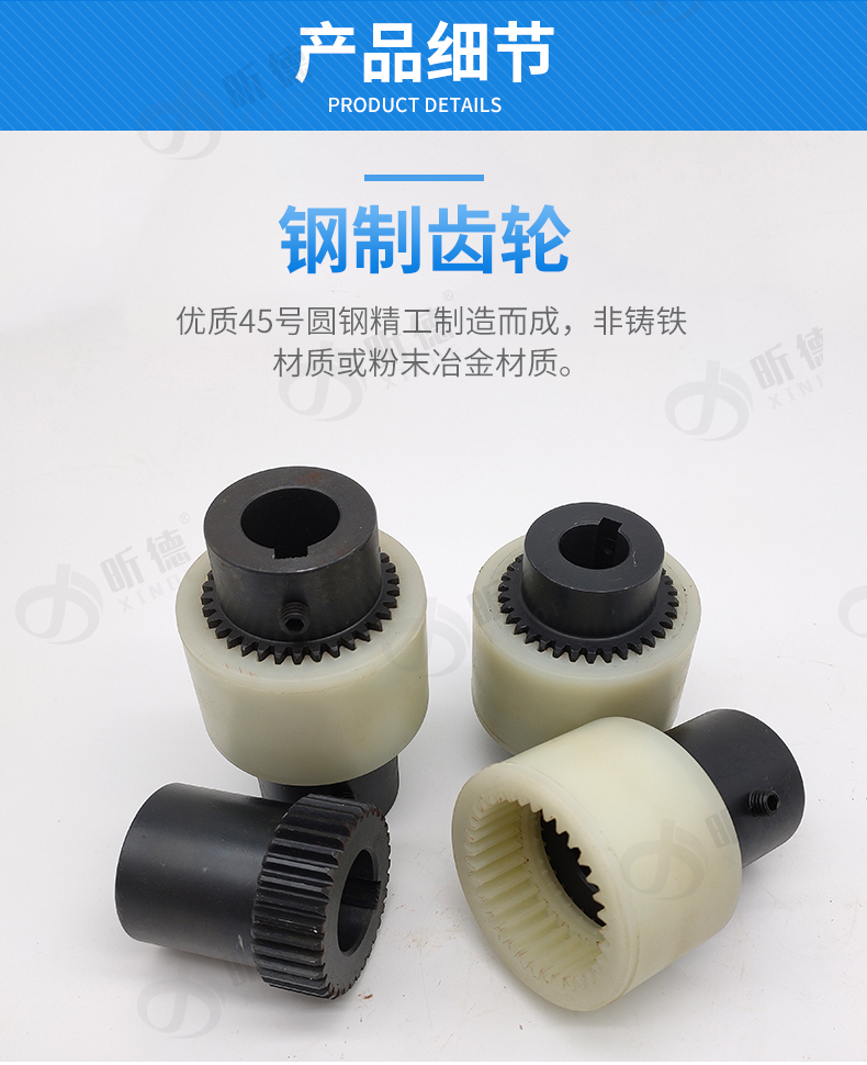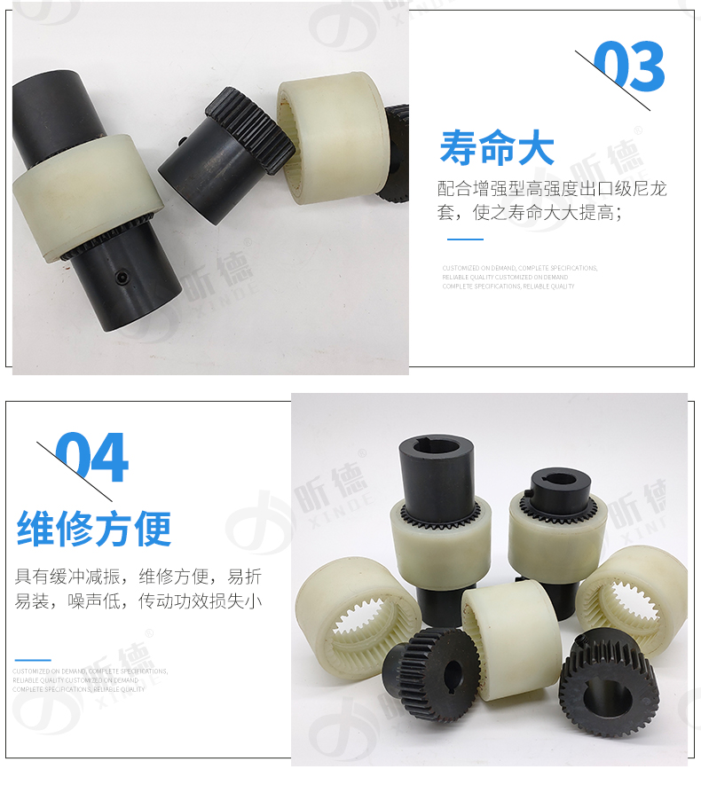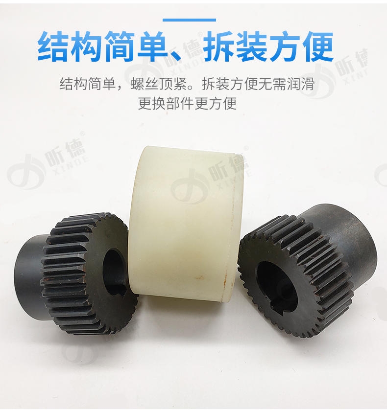 上海昕德機(jī)械廠專業(yè)從事傳動件10年之久;生產(chǎn)的尼龍?zhí)茁?lián)軸器有以下特點(diǎn);
