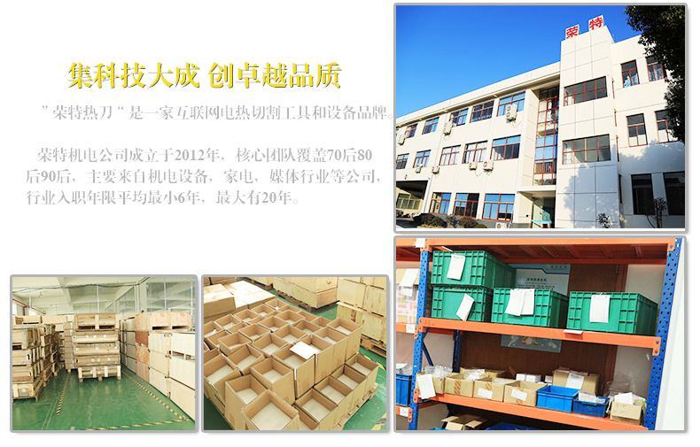 蘇州榮特機(jī)電有限公司,主要生產(chǎn)電熱刀、電熱絲切割機(jī)、泡沫切割刀,數(shù)控泡沫切割設(shè)備、熱切刀、電熱泡沫切割機(jī)、EPS泡沫切割刀、EVA海綿切割刀、珍珠棉KT板等材料的電熱切割設(shè)備,共有九大列電熱熱切割產(chǎn)品,在蘇州吳中區(qū)3180平方生產(chǎn)車間,擁有標(biāo)準(zhǔn)化的手持式、臺(tái)式、數(shù)控電熱刀產(chǎn)品生產(chǎn)線,電熱刀系列產(chǎn)品外銷出口60多個(gè)國(guó)家。...