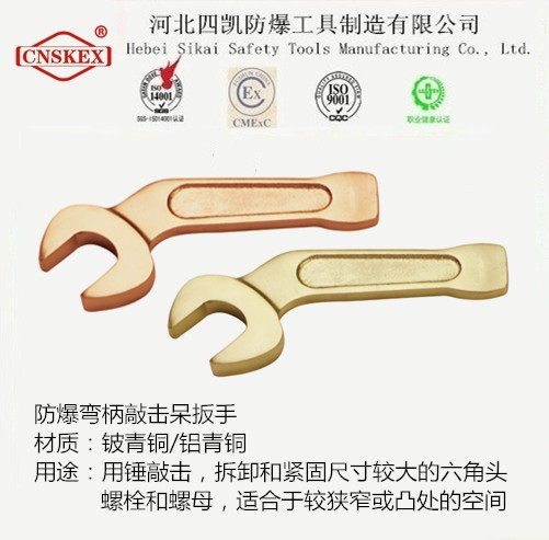 河北四凱防爆敲擊呆扳手是工業(yè)用大型工具之一,廣泛應(yīng)用石油開(kāi)采、油田、煉油、石化、化工、發(fā)電、造船、冶金、礦石、機(jī)械等行業(yè)。應(yīng)用范圍廣、堅(jiān)固耐用,敲擊扳手由優(yōu)質(zhì)中碳鋼或優(yōu)質(zhì)合金鋼整體鍛造而成,適用于石油、化工、冶金、發(fā)電、煉油、造船、石化等行業(yè)。