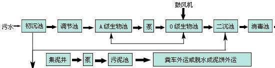 1.調(diào)節(jié)池(不在設(shè)備內(nèi)) 2.潛污泵(二臺(tái)一備一用) 3.初沉池 4.三級(jí)接觸氧化池 5.二沉池(二只并聯(lián)運(yùn)行) 6.消毒池 7.消毒裝置 8.污泥池 9.風(fēng)機(jī)房 10.風(fēng)機(jī)(二臺(tái)交替運(yùn)行)