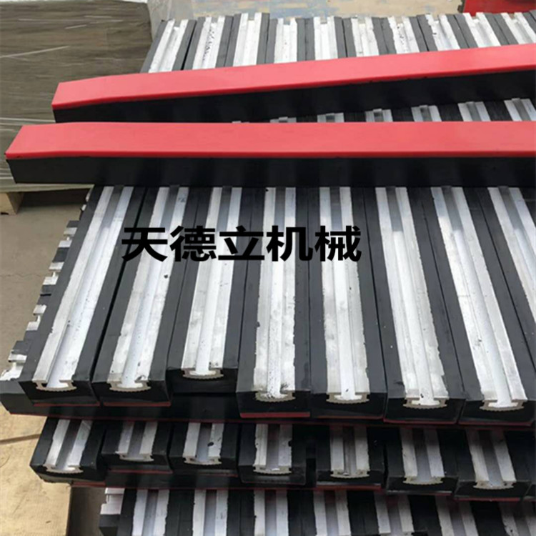 是由橡膠、聚乙烯,耐磨板金屬型材 鋼件或鋁型材、高板材按同一種結(jié)構(gòu)方式粘合為一體的組合件。由多件緩沖條和其它結(jié)構(gòu)件組合成緩沖床。