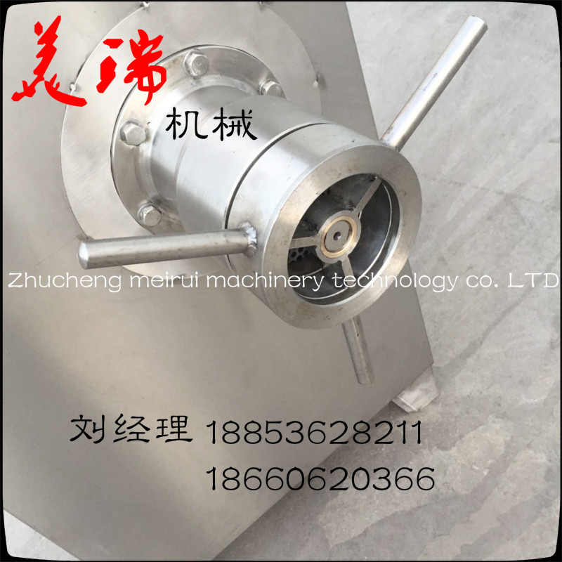 凍肉絞肉機(jī),豬肉凍肉絞肉機(jī)制成規(guī)格不同的肉粒,為斬拌或攪拌做好前期準(zhǔn)備工作。刀箱中的預(yù)切孔板處,利用轉(zhuǎn)動(dòng)的切刀刃和孔板上孔眼刃形成的剪切作用,將肉切切出各種不同尺寸的這樣,料斗中的肉通過(guò)螺桿進(jìn)入絞刀箱,顆粒肉。碎,并在螺桿擠壓作用下,將可以根據(jù)工藝要求選用合適孔徑的孔而切碎的豬肉凍肉絞肉機(jī)肉不斷被擠出機(jī)外。板,肉粒不斷擠出孔板外。