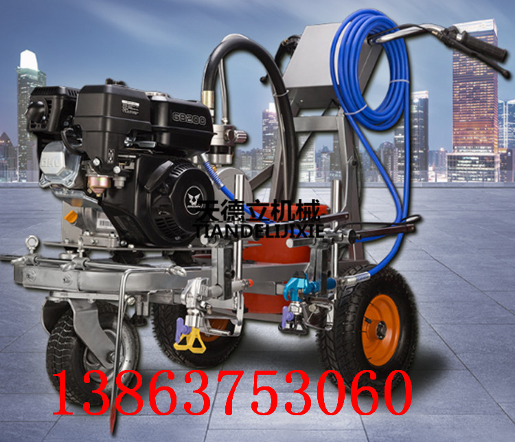 手推式雙槍宗申劃線機介紹:配有兩把噴槍,大流量隔膜泵,宗申發(fā)動機,為我公司新推出雙線,寬線劃線機器。