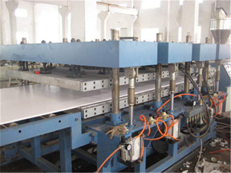 pvc木塑模板設備|建筑發(fā)泡板生產(chǎn)線設備由錐形雙螺桿擠出機、板材模具(雙流道)、真空定型和牽引等輔機部分組成。與自由發(fā)泡相比面層不僅平整而且光滑,具有較大的皮層硬度和剛度,力學性能明顯優(yōu)于自由泡體。