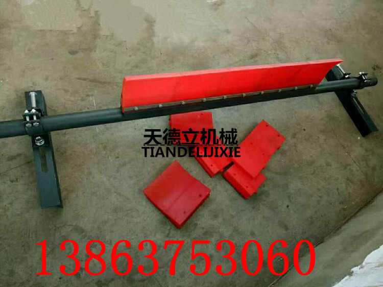 聚氨酯清掃器安 裝支座增加彈簧裝置,自動調(diào)節(jié)刮板與皮帶的距離。