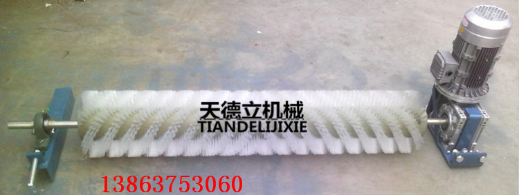 電動滾刷清掃器主要有電機,減速機,毛刷組成,電機有1.5kw,2.2kw,井下使用請選擇防爆電機;減速機速比10:1;毛刷材質是尼龍,主要有白色黑色兩種顏色