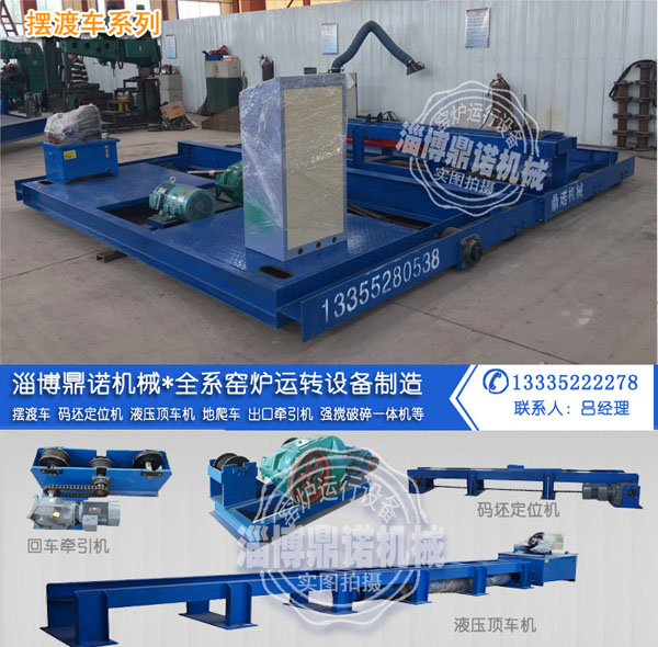 鼎諾窯爐運轉設備擺渡車有單步進、雙步進擺渡車,步進方式有液壓步進、鏈條步進。有單窯車擺渡和雙窯車同時擺渡擺渡車,有液壓自動定位功能,有手控操作、遙控器操控擺渡車,有自動化運行擺渡車。有帶卷揚機擺渡車,有單軌上車,雙軌上車擺渡車,功能多,樣式多,尺寸大小定制。