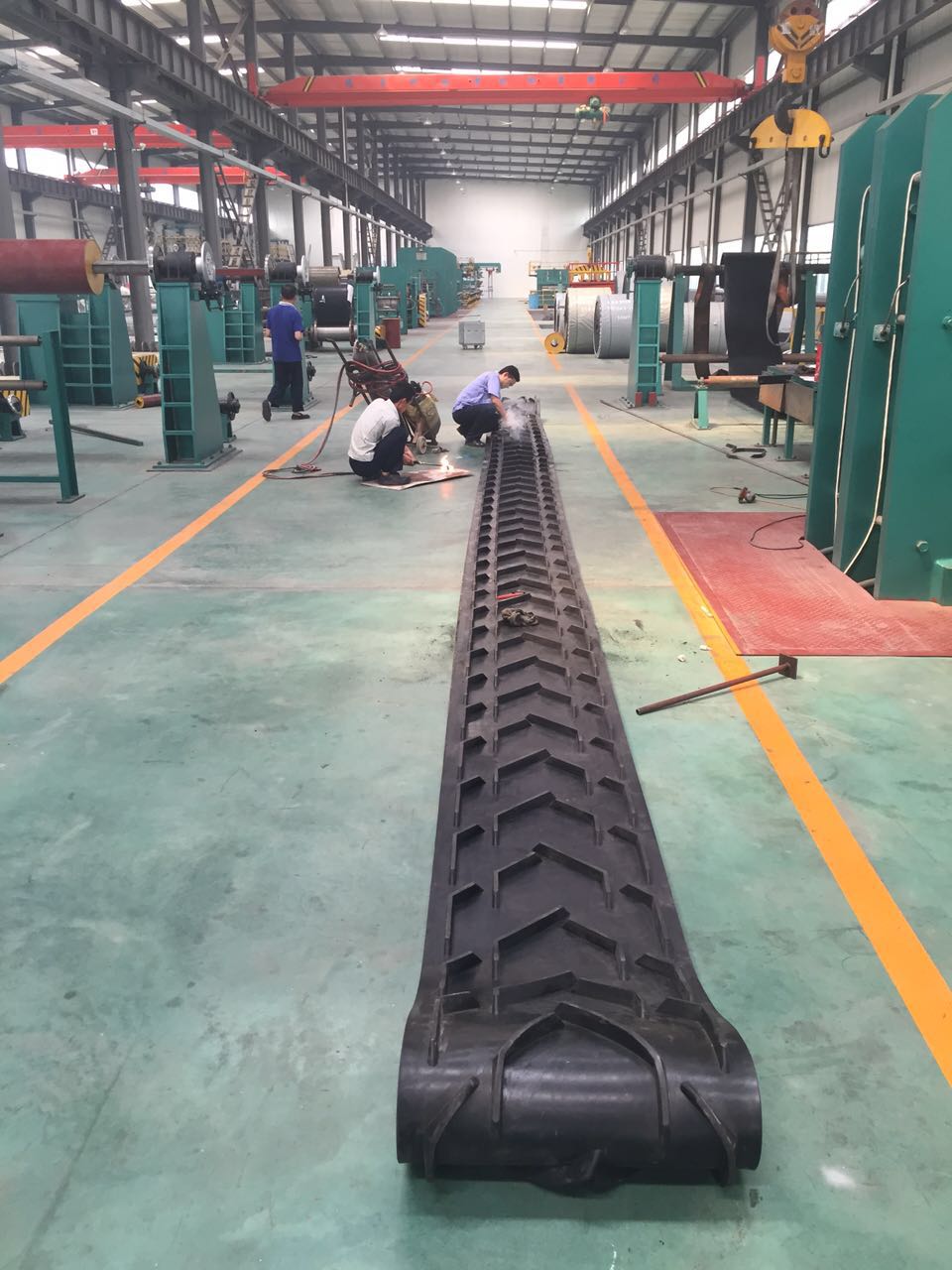 一產(chǎn)品用途:花紋輸送帶是由工作面為花紋狀的覆蓋膠和非工作面為平面的覆蓋膠與帶芯構(gòu)成的傾角輸送帶。帶面上有高于帶體的“人”字型花紋,花紋可是開口的也可是閉口,每一種花紋可分為(高、中、低)。