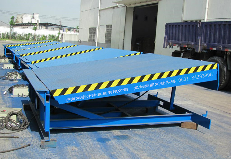 固定登車橋的橋身長(zhǎng)度取決于需要安 裝或臺(tái)的離地高度,由于其工作角度的制約,當(dāng)貨臺(tái)的高度超過(guò)1200mm時(shí)通常選擇的是長(zhǎng)度2500mm的橋面;若貨臺(tái)的高度在800--1000mm內(nèi)的話橋身的長(zhǎng)度要達(dá)到3000mm--3500mm;(貨臺(tái)越低橋身越長(zhǎng)):