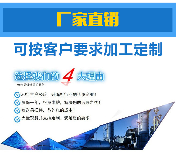公司生產(chǎn)設(shè)備精良,工藝先進(jìn)合理,檢測(cè)手段齊全,技術(shù)力量雄厚,采用國(guó)內(nèi)外尖端液壓技術(shù);產(chǎn)品共有六大系列、二十多個(gè)品種,承接各種非標(biāo)產(chǎn)品及防爆升降設(shè)備設(shè)計(jì)和制作,規(guī)格型號(hào)齊全,質(zhì)量保證。廣泛用于建筑業(yè)室內(nèi)外裝修、車間、車站碼頭、...