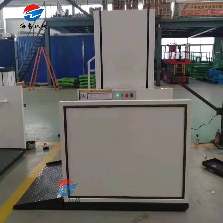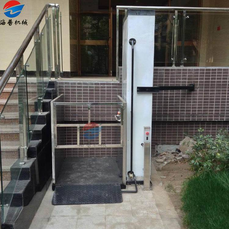 我公司生產(chǎn)的該款殘疾人升降機(jī)采用剪叉式升降結(jié)構(gòu),液壓驅(qū)動(dòng),升降安 全,外部采用無(wú)盲道式不銹鋼臺(tái)面和護(hù)欄,