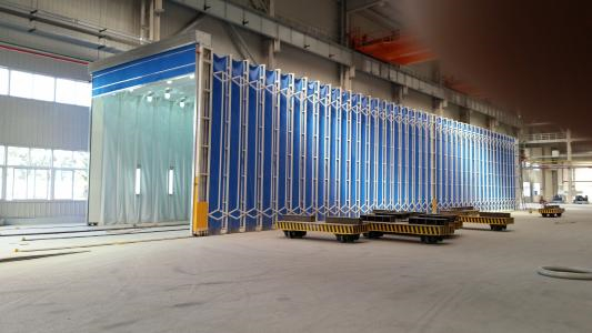 伸縮式噴漆房整體為框架傳動(dòng)結(jié)構(gòu),每組框架間均有阻燃pvc布密封連接,安 裝快捷、外形美觀,結(jié)構(gòu)精巧,使用方便,制造成本低,節(jié)約投資!