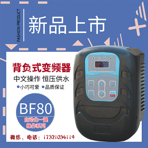 bf80恒壓供水背負(fù)式自動(dòng)化一鍵操作型變頻器為我公司的自動(dòng)化一鍵操作型系列產(chǎn)品,中文操作,簡(jiǎn)易供水參數(shù)設(shè)置。